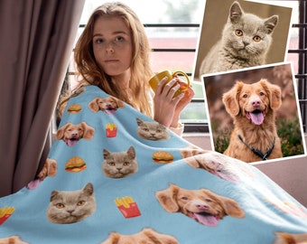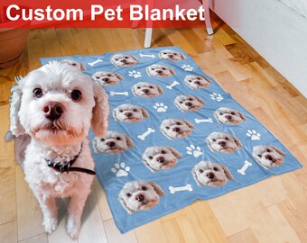 Create your own personalized dog blankets with your dog's face printed on the front. Snuggles with your cat or dog just got even comfier! Custom pet portrait memorial fleece blanket, mothers day gifts.