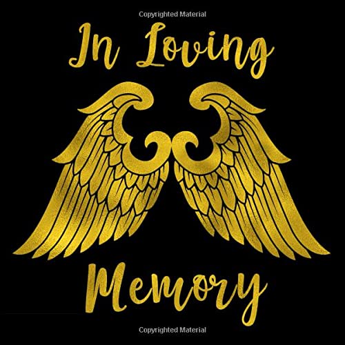 In Loving Memory Gold Angel Wings Guest Book For Memorial Service Celebration Of Life Or Funeral - Guestbook With Space For Visitors To Leave Name And Address - Square Size 825